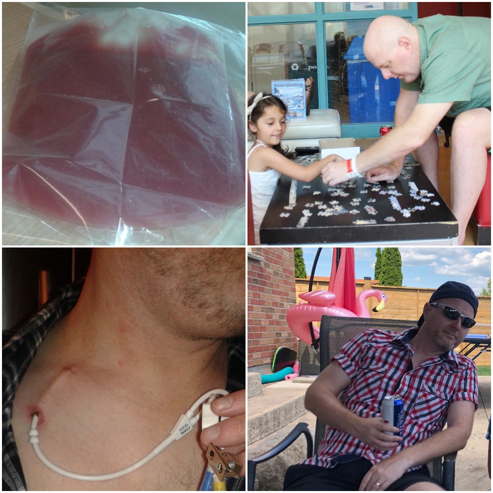 Fortunate to find a perfect match unrelated donor, I was admitted into the hospital on two occasions, each for about three weeks to prepare my body for the transplant through rounds of chemo and radiation. The first time was in late July, followed by a week at home, and then back in on August 25. With all my bone marrow completely wiped out of me, I received this sweet package (pictured). It took 45 minutes to get the stem cell into me through the Hickman line, and then the donor’s cells were ready to go to work. Stem cells can become any cell that the body needs. It immediately identified that my body was in need of bone marrow and within a few days it started rebuilding those cells. As the marrow started regenerating, it began creating blood. Those first few days required a lot of transfusions. By September 19, once my immunity had built up well enough (i.e. to the levels of an infant) I was discharged. From there it was a matter of staying healthy, keeping fit and staying positive. And hoping for the best.